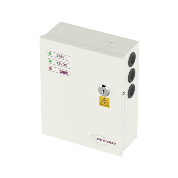 Ce modèle convient pour l'alimentation des produits de verrouillage et de contrôle d'accès, auxquels il restitue exclusivement du 12V DC. Le courant de sortie total est de 3 ampères maximum. Il bénéficie d'un design unique créé par Sewosy.