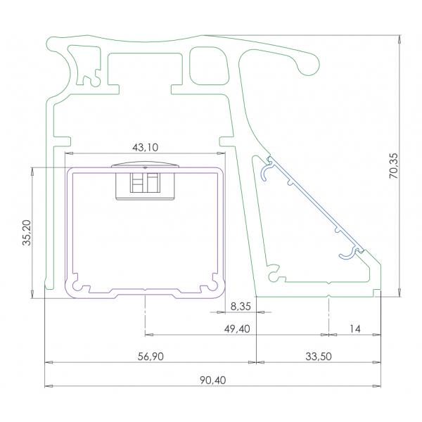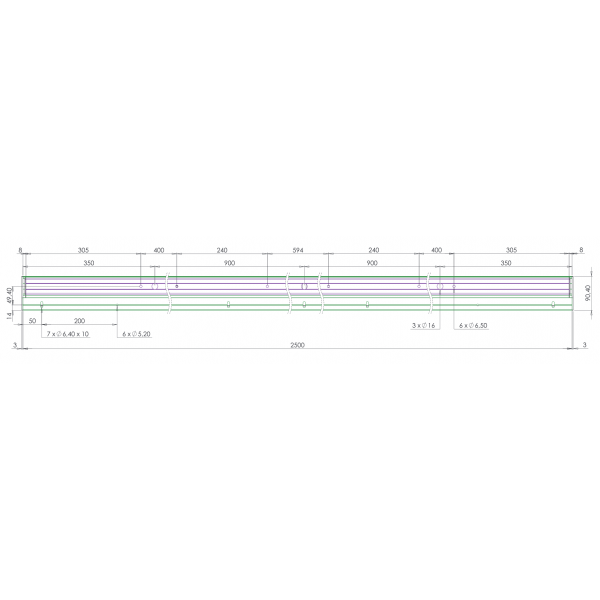 Bandeau CPREG2N 2500 mm AS 2 x 300 daN 12/24V DC +