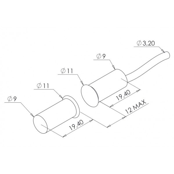 Deux fils sortent de ce contact cylindrique et le câble de raccordement fait deux mètres.