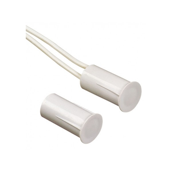 Ouvert lorsqu'il est au repos, le contact magnétique se ferme lorsqu'il se rapproche de l'ampoule Reed encastrée dans le dormant. Ce fonctionnement par variation du champ magnétique présente l'avantage d'une grande tolérance à la déformation de la menuiserie, aussi bien qu'aux défauts de positionnement.