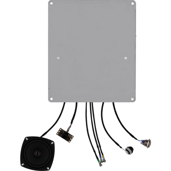 Kit portier avec carte en boîtier, micro, HP et 1 bouton d'appel et 3 Leds indiquant l'appel en cours - audio vidéo avec caméra, interface loi Handicap - alimentation PoE