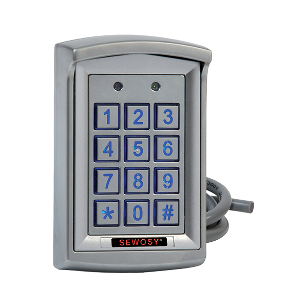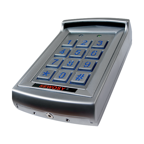 Sewosy propose une gamme de claviers à code et lecteurs de proximité compatibles avec les boutons poussoirs pour PMR 12/24V DC avec LEDs pilotables.