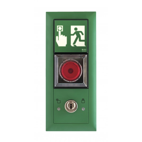 - Bouton d'urgence rétroéclairé avec capot de protection anti-éclats, imperdable et réutilisable